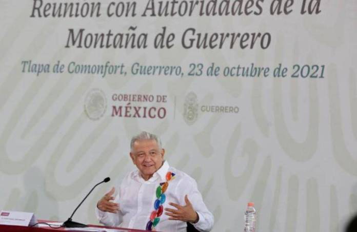 Regeneración, 23 de octubre de 2021. El presidente Andrés Manuel López Obrador tuvo una reunión este sábado con autoridades de la Montaña de Guerrero, desde Tlapa de Comonfort.