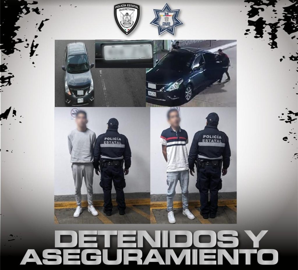 Querétaro, Qro., 6 de julio de 2023.- La coordinación interinstitucional entre la Policía Estatal de Querétaro (POES Querétaro) y la Secretaría de Seguridad del Estado de México dio como resultado la detención de dos personas y el aseguramiento de un automóvil presuntamente relacionado con el robo de celulares y un reloj de lujo, cometido en una plaza comercial de la capital queretana.