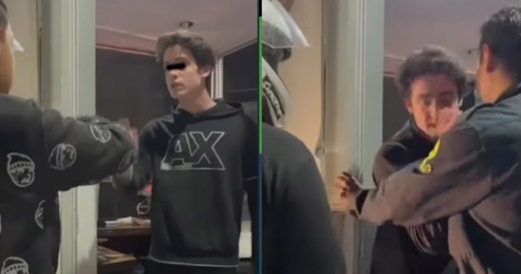 Los hechos quedaron grabados por las cámaras de seguridad y por otra residente que al darse cuenta del del agresivo muchachuelo, apuntó su celular hacia donde venía el timbre de voz con la papa caliente en el hocico en espera de su actuar que evidentemente, no decepcionó.