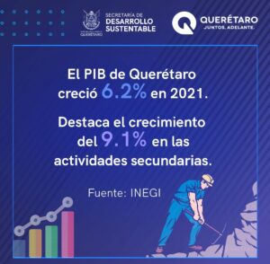 Querétaro, Qro., 7 de diciembre de 2022.- De acuerdo con datos del Instituto Nacional de Estadística y Geografía (Inegi), los estados con mayor crecimiento del Producto Interno Bruto (PIB) de 2020 a 2021 fueron Quintana Roo, Baja California Sur, Nayarit, Baja California, Tabasco, Yucatán y Querétaro, donde aumentó en 6.2 por ciento.