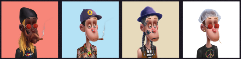 Estos 10,000 personajes o socios, que ellos definen como NFTokers o avatares y tienen guiños a fumetas famosos que llevaron a su realidad la planta, como Cheech y Chong y muchos otros.