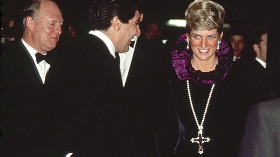 Diana lució la cruz gigante en un baile benéfico en octubre de 1987, combinándolo con un collar de perlas y un espectacular vestido de estilo isabelino en un color púrpura.
