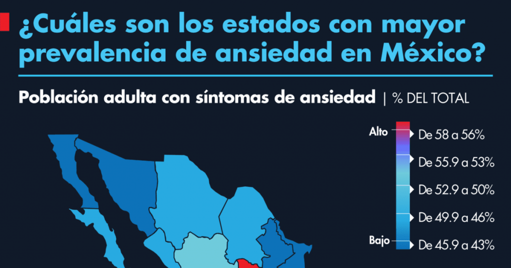 ¿Cuáles son los estados con mayor prevalencia de ansiedad en México?
