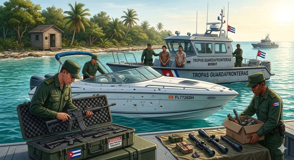 - Identificación: El gobierno cubano afirma que los involucrados son ciudadanos cubanos residentes en EE. UU., algunos con antecedentes delictivos. Se incautaron fusiles de asalto, explosivos caseros y visores telescópicos.