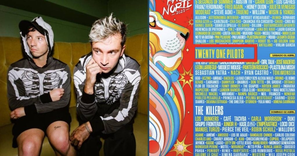 Festival norteño.- Los organizadores anunciaron que para el festival “Pa’l Norte” se contará con el grupo Twenty One Pilots como nuevo headliner del evento, esto luego de la cancelación de Blink-182 que ya estaba confirmada y que terminó por cancelar su presentación debido a la fractura en el dedo del baterista de la agrupación, algo que rompió el corazoncito de muchos fans que ya se veían reviviendo su época emo.