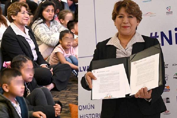 Al firmar el Pacto, la maestra Delfina Gómez se compromete a trabajar para disminuir el porcentaje de infantes que viven en pobreza y a reducir la desnutrición.