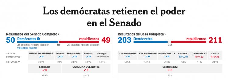 De acuerdo con The New York Times, los demócratas sellaron el control del Senado, lo que significa un momento decisivo en una elección intermedia de Estados Unidos, en la que los demócratas desafiaron los patrones históricos y las predicciones de “ola roja”.