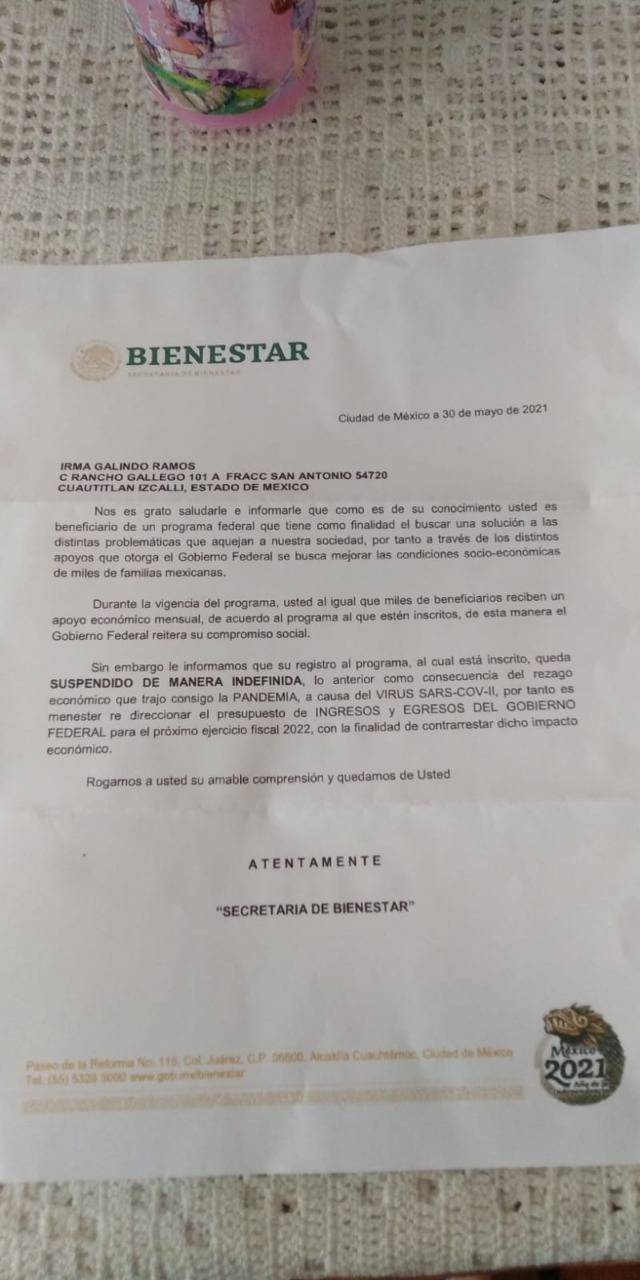 Regeneración, 3 de mayo del 2021.A unos días en que se lleven a cabo las elecciones en el Estado de México y en otras regiones se ha reportado la entrega de un oficio; el cual tiene el logo de la Secretaría de Bienestar encargada de los programas sociales.