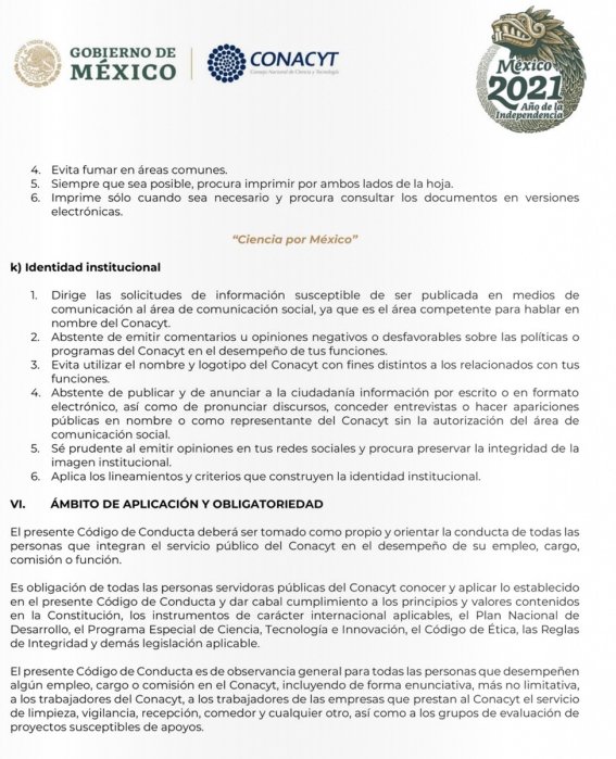 El Consejo Nacional de Ciencia y Tecnología (Conacyt) emitió un nuevo código de ética para sus empleados, beneficiarios, prestadores de servicio y hasta aspirantes, en el que se les pide que no incurran en comentarios negativos en contra de la institución y sus programas.