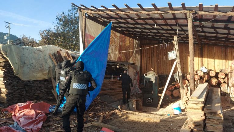 Este 17 de enero fue desmantelado un centro de acopio y transformación de madera que operaba ilegalmente en San Miguel Ajusco, en la alcaldía Tlalpan. En el lugar fueron aseguradas una camioneta de plataforma de 3.5 toneladas con 1.8 metros cúbicos de madera en rollo, una motosierra, una torre de aserrío, un motor eléctrico y 84 “unidades de madera en rollo”. Asimismo, 12 unidades de sierra de cinta, rieles, herramientas y un carro empujón.