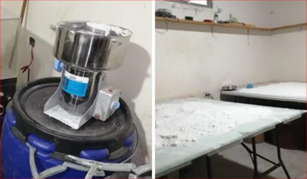 Así, el personal del Ejército Mexicano orientó sus reconocimientos terrestres hacia dicho poblado, logrando localizar el inmueble que correspondía a las características obtenidas, del cual emanaba un fuerte olor a sustancias químicas, por lo que estableció un perímetro de seguridad, solicitando la expedición de una orden técnica de investigación a la Fiscalía General de la República, quien al cumplimentarla logró asegurar lo siguiente: