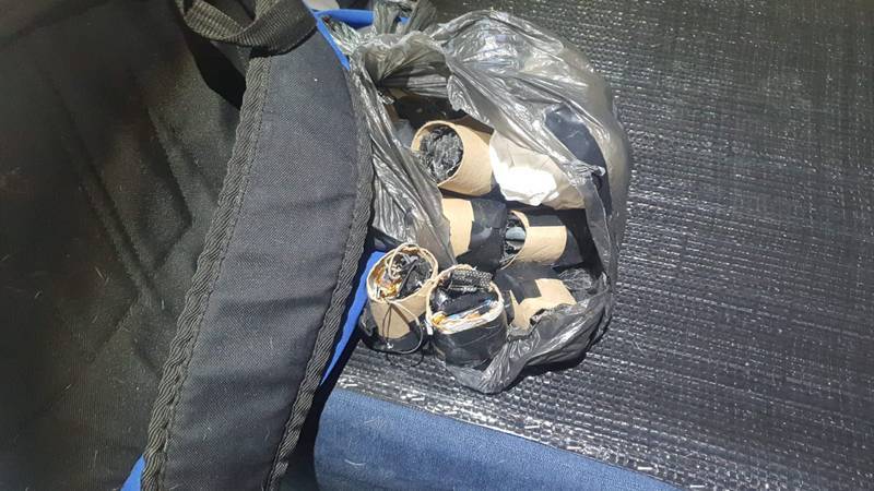 Luego de llevar a cabo una inspección, los policías encontraron cuatro bombas molotov y otro artefacto explosivo hecho con conectores eléctricos, vidrios y fragmentos de lámina; además, de dos perros muertos y otro más herido.