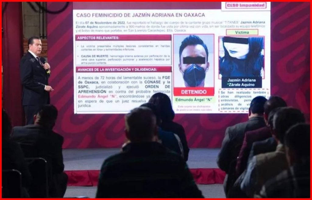 (10 DE NOVIEMBRE, 2022).- La mañana de este jueves, Ricardo Mejía Berdeja, Subsecretario de Seguridad Pública, anunció la detención de Edmundo Ángel “N”, presunto responsable del feminicidio de Jazmín Adriana Zárate Aquino.