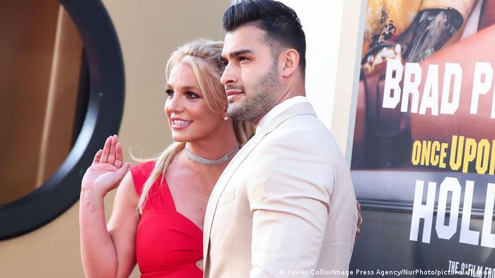 Britney Spears con su esposo, Sam Asghari. Fue en su boda, el 9 de junio de 2022, que irrumpió presuntamente su exesposo Jason Alexander.