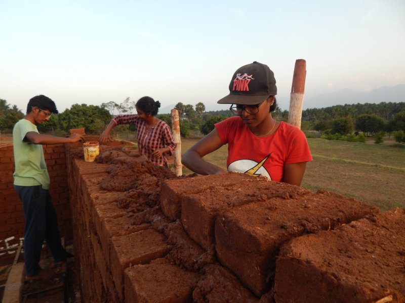 Cuando comenzaron a trabajar juntos, no lo hicieron con la idea de fundar Earth Building. “Mis padres querían volver a la aldea después de permanecer en la ciudad durante varios años. Así que comencé a investigar sobre casas de adobe y luego Stanzin y yo decidimos construir mi casa en la aldea de Valukkuparai, de donde proviene mi madre, en el distrito de Coimbatore.