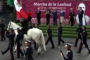 Mientras que el presidente, López Obrador, develó una placa conmemorativa por los 110 años de la Marcha de la Lealtad; pues se recordó cuando un batallón del Heroico Colegio Militar, marcho junto con el presidente, Francisco I. Madero.
