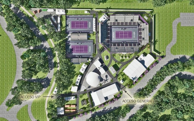 Las instalaciones de partidos son en un terreno adjunto al Yucatán Country Club, donde vamos a tener una grada para la cancha 1 y 2 de mil personas y un estadio modular de tres mil 500. Seguimos en temas básicos, levantando las planchas de las canchas para después iniciar con la construcción de los estadios modulares.