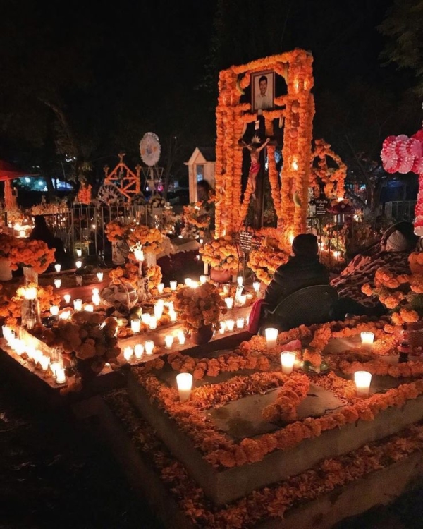 En México, el 2 de noviembre, se acostumbra adornar las tumbas de los difuntos en los panteones con flores, papel picado, veladoras. Ahí sus familiares pasan tiempo velando los cementerios ya sea rezando o con algo de música.