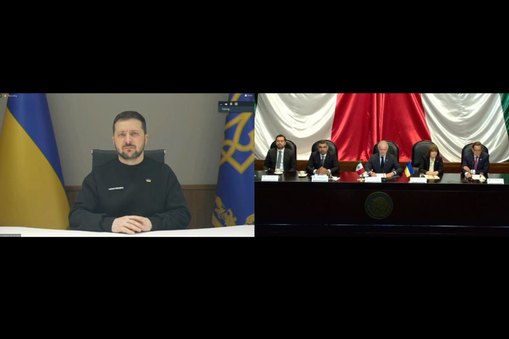 El Grupo de Amistad México- Ucrania, que preside el diputado Riult Rivera Gutiérrez (PAN), se reunió vía digital con el presidente de la nación europea, Volodymyr Zelensky, quien agradeció la ayuda humanitaria enviada por nuestro país para la atención de sus ciudadanos y heridos por la invasión rusa; asimismo, solicitó a México a que continúe en la defensa de los principios y convenciones en los que se basa el poder internacional de seguridad global.