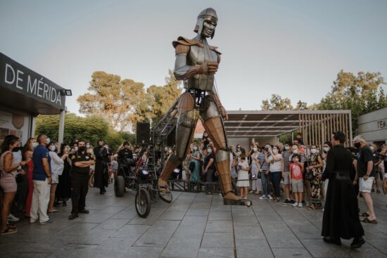 Querétaro, Qro., 30 de junio de 2023.- Como parte del Festival Querétaro Experimental, el impresionante pasacalles Aquiles, una figura de más de 5 metros de altura, recorrerá el Centro Histórico de la capital este sábado y domingo a las 11 y las 19 horas. Partirá del andador Madero y caminará por las principales calles del corazón de la ciudad.