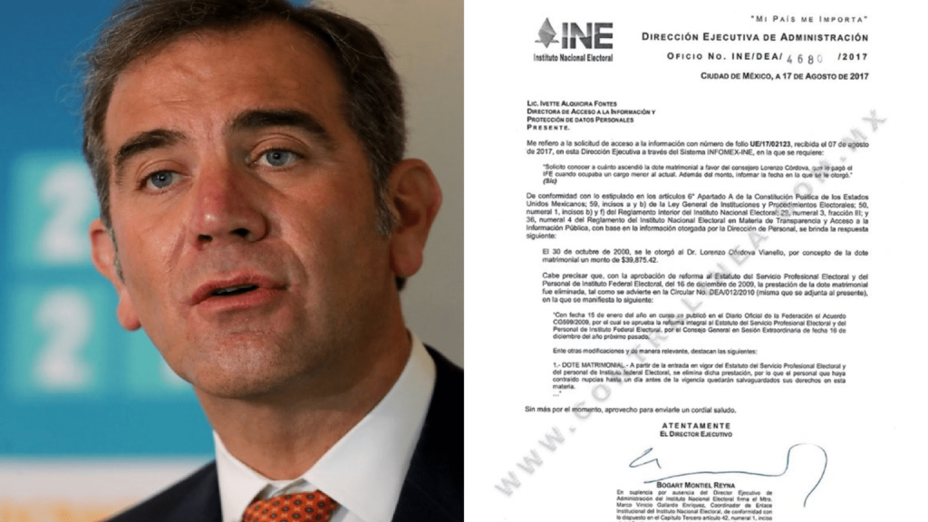 -“Lorenzo Córdova ha estado plantado en el INE desde antes que fuera INE, en el año 2000 la institución le pago la boda través del “dote matrimonial”, una prestación que hoy ya no existe”.