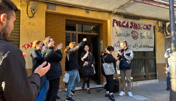 La acción es una de las primeras del sindicato, que se dio a conocer a mediados de enero tras la unión de cinco sindicatos de vivienda de barrios de la ciudad, en un acto celebrado en l’Alqueria Popular de Malilla. En las últimas semanas ha convocado acciones para frenar varios desahucios en la ciudad, uno de ellos ayer mismo en el barrio de Orriols que se acabó ejecutando con violencia por parte de la policía, según denuncian desde el sindicato, dejando a una familia con menores en la calle y a varias activistas del colectivo heridas.