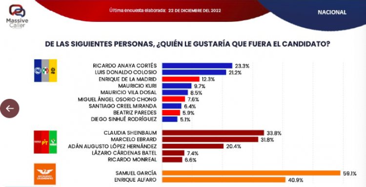 De acuerdo con el ejercicio, Ricardo Anaya y Luis Donaldo Colosio se ubican como los dos favoritos para encabezar a la oposición en 2024, por debajo se encuentran Enrique de la Madrid, exsecretario de Turismo, seguidos por los gobernadores de Querétaro y Yucatán, Mauricio Kuri y Mauricio Vila