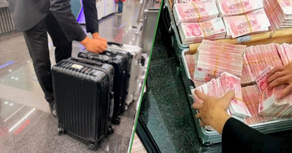 El propio personal del banco tuvo que contar billete tras billete hasta llegar a la cantidad que iba a retirar, misma que colocaron en maletas que el sujeto había llevado con ese fin, y luego se marchó en su limusina, al parece ya sin mascarilla puesta.