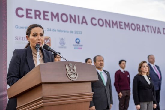 Querétaro, Qro., 24 de febrero de 2023.- El gobernador de Querétaro, Mauricio Kuri González, encabezó la Ceremonia Conmemorativa por el Día de la Bandera en el estado, la cual contó con la presencia de diversos funcionarios públicos de la entidad y autoridades militares.