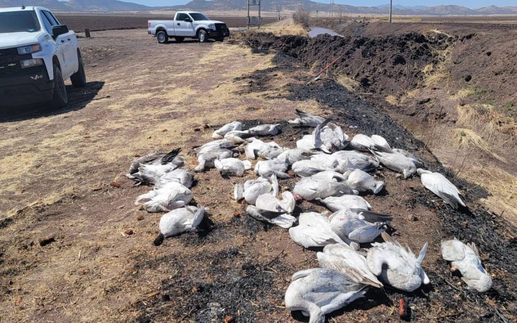Al llegar los oficiales encontraron en unas tierras de cultivo cerca de 50 aves ya muertas, las cuales fueron identificadas como gansos nevados migratorias que llegan desde Canadá hasta esta región para pasar el invierno.