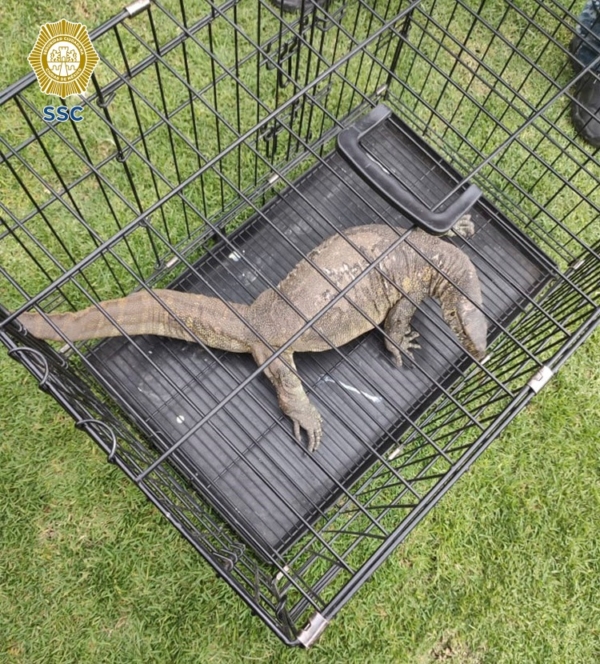 En el sitio, veterinarios y elementos de seguridad inspeccionaron el reptil, el cual mide 120 cm de largo y carece de escamas. Tras la revisión, los elementos informaron que se trata de un varano adulto del Río Nilo.