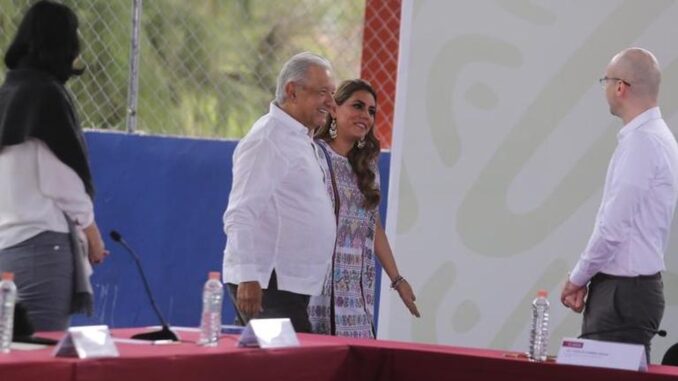 “Estoy muy contento, mucho muy contento con la gobernadora de Guerrero, Evelyn Salgado, la queremos mucho, la queremos mucho, y la vamos a ayudar porque es ayudar al pueblo de Guerrero”, enfatizó López Obrador, mientras la gobernadora la volteó a ver, sonrió y puso su mano en el corazón en señal de agradecimiento.