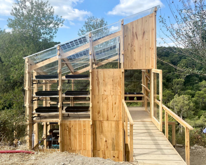 Los estudiantes, encabezados por Vicente Guallard y Daniel Ibañez, directores de la Maestría en Edificaciones Ecológicas Avanzadas y Biociudades (MAEBB) del IAAC, construyeron un invernadero de dos pisos en dos meses. La estructura, construida en el Parque Natural de la Serra de Collserola de Barcelona, pretende demostrar cómo se pueden satisfacer nuestras necesidades más básicas de una manera más ecológica, de acuerdo con el objetivo de cero emisiones netas para 2050 de la UE.