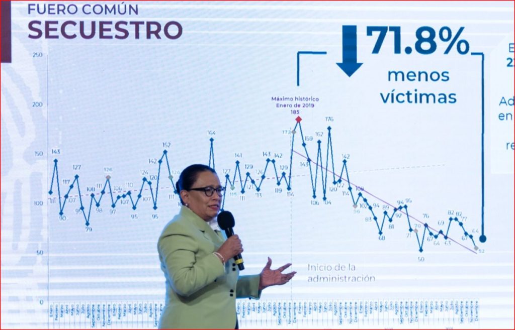 (20 DE ENERO, 2022).- Esta mañana, durante la conferencia de prensa mañanera, la secretaria de Seguridad y Protección Ciudadana (SSPC), Rosa Icela Rodríguez informó que los homicidios en México tuvieron una reducción de cuatro por ciento con respecto al inicio de la administración. En tanto, el delito de feminicidio tuvo una baja del 7% en diciembre de 2021, en comparación con las cifras reportadas en el mismo mes de 2020.
