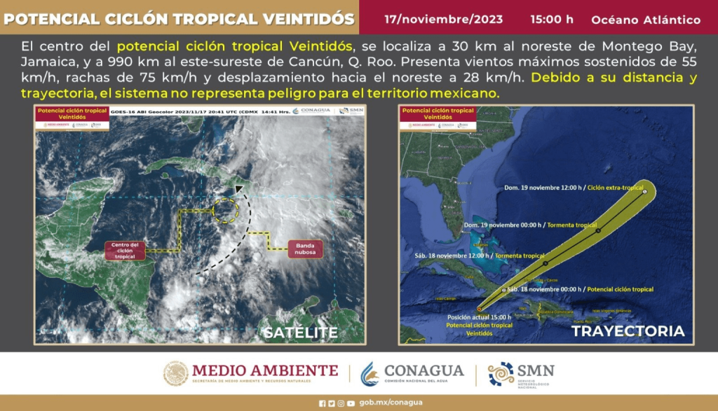 Por otra parte, la Comisión Nacional del Agua (Conagua) señaló que un sistema anticiclónico en niveles medios ocasionará escaso potencial de lluvia y ambiente vespertino cálido.