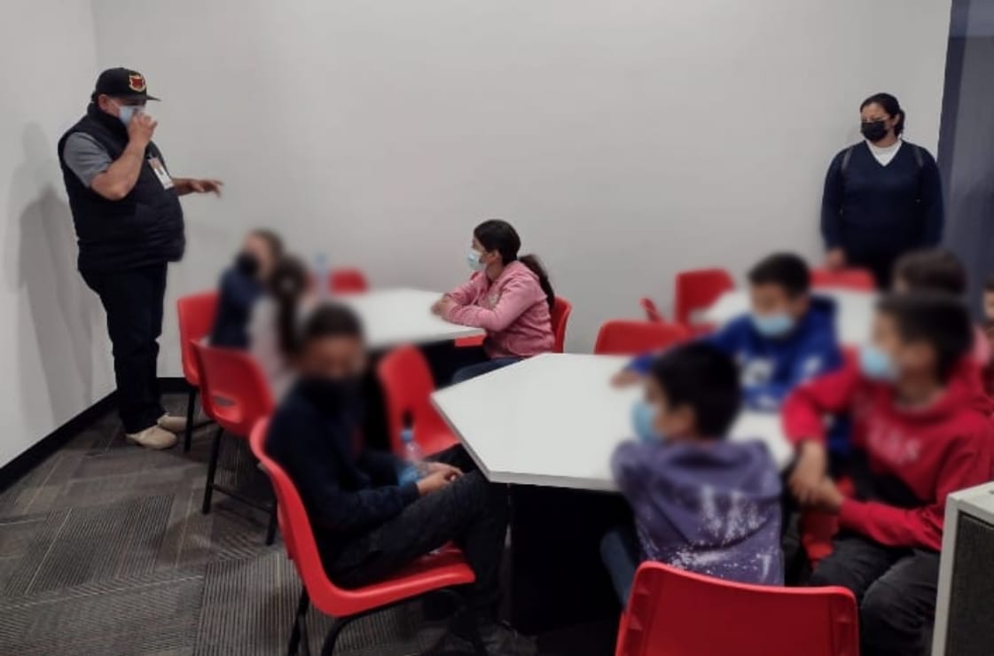 Hermosillo, Sonora; 25 de febrero de 2022.- Para crear desde temprana edad una cultura del cuidado y fomentar el uso correcto del 9-1-1, personal del Centro de Control, Comando, Comunicación, Cómputo, Coordinación e Inteligencia (C5i) Sonora, recibió en sus instalaciones a un grupo de niñas y niños de la colonia La Cholla en Hermosillo.