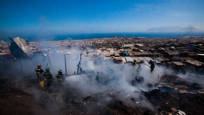 Fuerte incendio destruye 45 viviendas en asentamiento irregular en Chile
