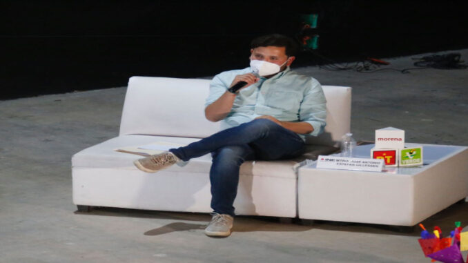 Ciudad Ixtepec, Oax. 17 de Mayo del 2021. Con propuestas claras, Pepe Estefan Gillessen, candidato a diputado federal por el VII distrito de la coalición “Juntos Hacemos Historia” ganó contundentemente el debate convocado por la vocalía distrital del Instituto Nacional Electoral, confirmando su doble ventaja en la intención del voto.