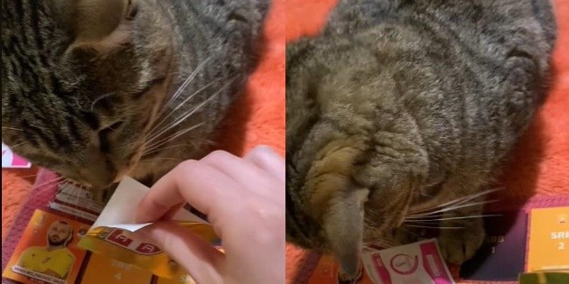 Inmediatamente los usuarios comentaron el video y se enamoraron del gatito por ayudar a su dueña a pegar las estampas.