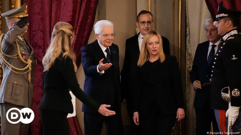 La líder del partido Hermanos de Italia, Giorgia Meloni, juró este sábado (22.10.2022) el cargo como nueva primera ministra en una ceremonia oficial ante el jefe del Estado, Sergio Mattarella. «Juro ser fiel a la República, cumplir lealmente la Constitución y las leyes y ejercer mi mandato y mis funciones en el interés exclusivo de la nación», pronunció ante el jefe del Estado, en el Salón de las Fiestas del romano Palacio del Quirinal.