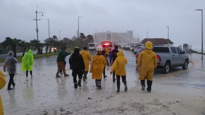 Además, se pronostican rachas de viento de 120 a 150 km/h y oleaje de 3 a 5 metros en las costas de Veracruz; rachas de 80 a 100 km/h con oleaje de 2 a 3 metros de altura en las costas de Tabasco y Tamaulipas, y rachas de viento de 60 a 70 km/h con oleaje de 1 a 2 metros en las costas de Campeche y Yucatán; además de posibles trombas marinas en las costas de Veracruz, Tabasco y Campeche.