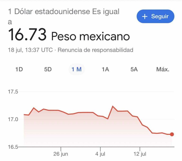 Peso mexicano continúa operando con estabilidad, se registra en 16.73 unidades por dólar, el tipo de cambio mantiene una tendencia a la baja mejorando la economía mexicana. El cargo Gracias a las relaciones financieras estables el peso continúa manteniéndose fuerte, se...