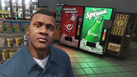 Máquina expendedora en GTA V, podías comprar refrescos y recuperar vida.
