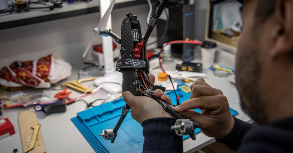 En un taller en el oeste de Ucrania, un técnico ajustaba un soporte metálico que se había fijado a un dron de carreras con el fin de que pudiera cargar una granada, para así convertir en un arma letal un dispositivo volador que se vende en las tiendas de pasatiempos.