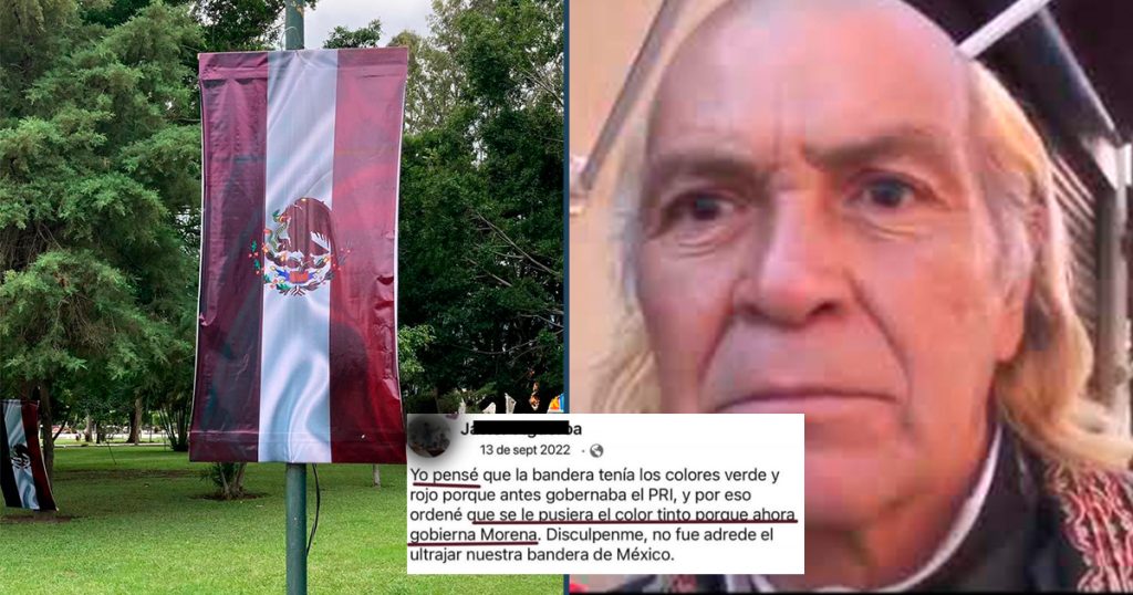 “Yo pensé que la bandera tenía los colores verde y rojo porque antes gobernaba el PRI, y por eso ordené que se le pusiera el color tinto porque ahora gobierna Morena. Discúlpenme, no fue adrede el ultrajar nuestra bandera de México”, aseguró el para nada fanático sujeto.