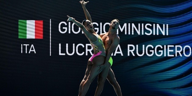En el mundial de 2022, disputado en Budapest, el dueto mixto fue ganado por los italianos Giorgio Minisini y Lucrezia Ruggiero, con 13 naciones compitiendo.
