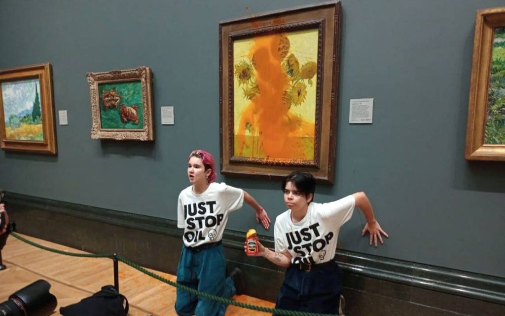 Las dos activistas, pertenecientes al grupo de desobediencia civil «Just Stop Oil», entraron en la Galería Nacional de Londres y arrojaron dos latas de sopa Heinz sobre el lienzo, pintado en 1888 por el maestro impresionista holandés y valorado en 84,2 millones de dólares.