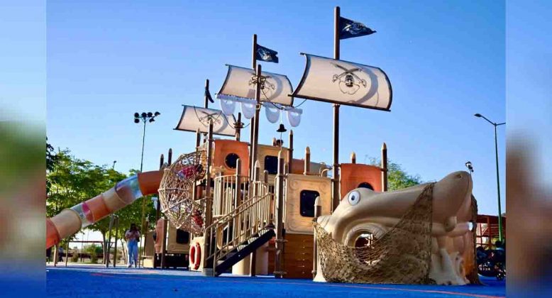 Hermosillo, Sonora.- Un área de juegos infantiles en la Unidad Deportiva ‘El Cárcamo’ fue inaugurada por el alcalde de Hermosillo, Antonio Astiazarán, y la presidenta del DIF municipal, Patricia Ruibal.