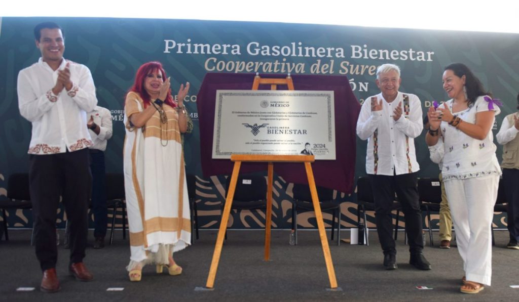 (26 DE ENERO, 2024).- La tarde de este viernes, el presidente Andrés Manuel López Obrador inauguró la primera Gasolinera Bienestar, Cooperativa del Sureste, en el Ejido de Conhuas en Calakmul, Campeche. Ahí aseguró que la transformación continuará “para que siga gobernando el pueblo”.