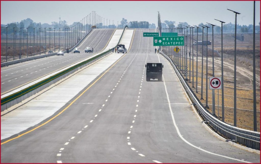 De acuerdo con la Secretaría de Infraestructura, Comunicaciones y Transportes, la vialidad principal al AIFA tiene una longitud de 14.1 kilómetros y tres carriles de circulación por sentido.
